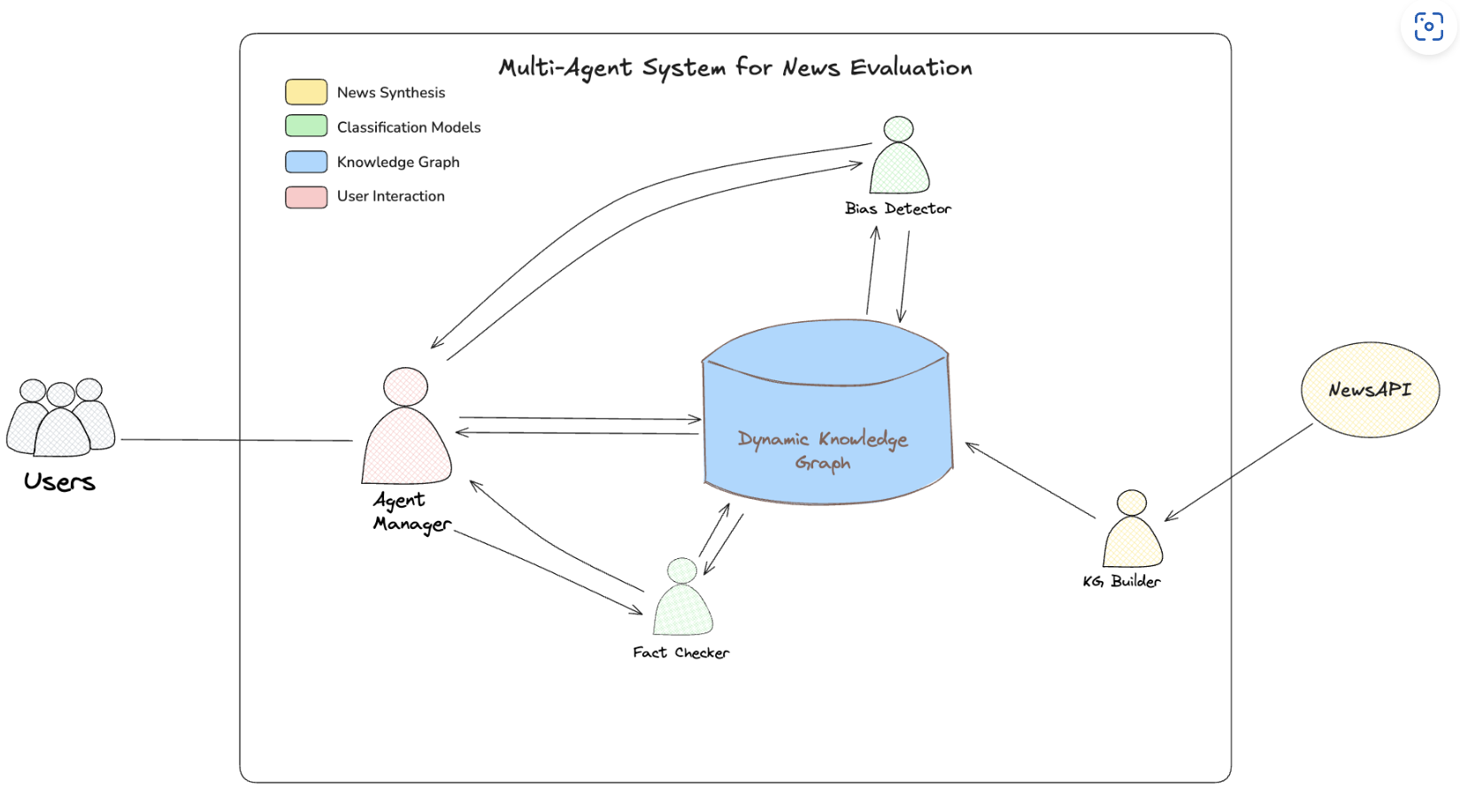 This project implements a multi-agent with integrated dynamic KG system capable of detecting media bias in news articles and providing unbiased summaries. The system utilizes multiple specialized agents for tasks such as bias detection, fact-checking, and knowledge graph maintenance.